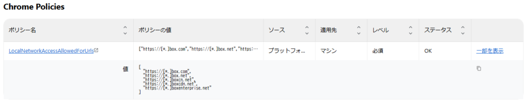Chromeブラウザにポリシーが適用されたかを確認します。