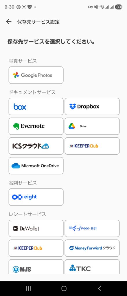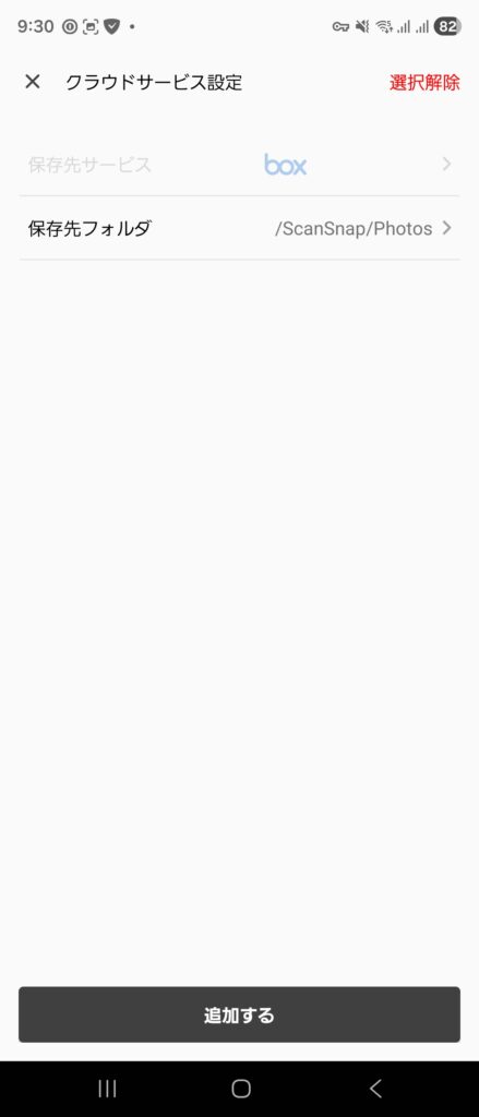保管先のクラウド連携はアプリ上で設定することができます。設定参考例として私が利用している「Box」をご紹介します。