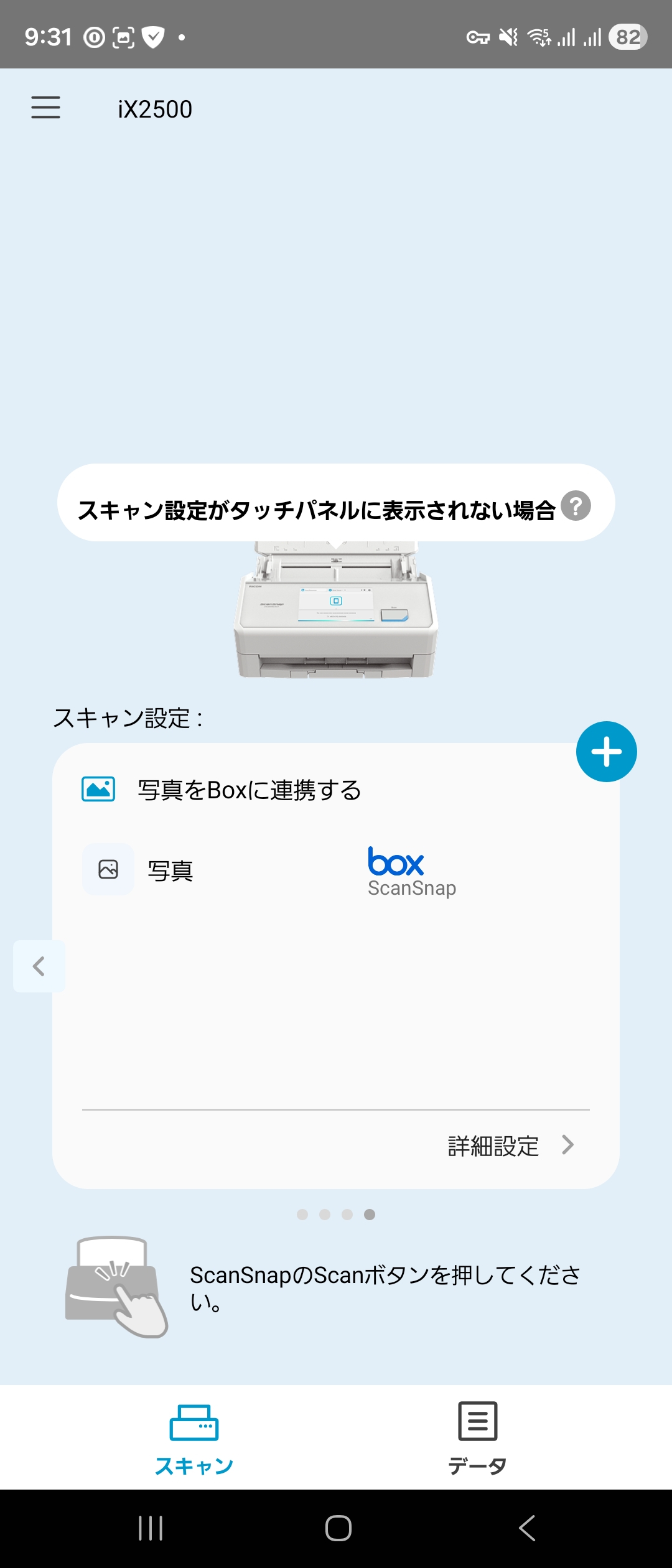 iX2500は直接「Box」に保存できるためPCやスマホは不要です。