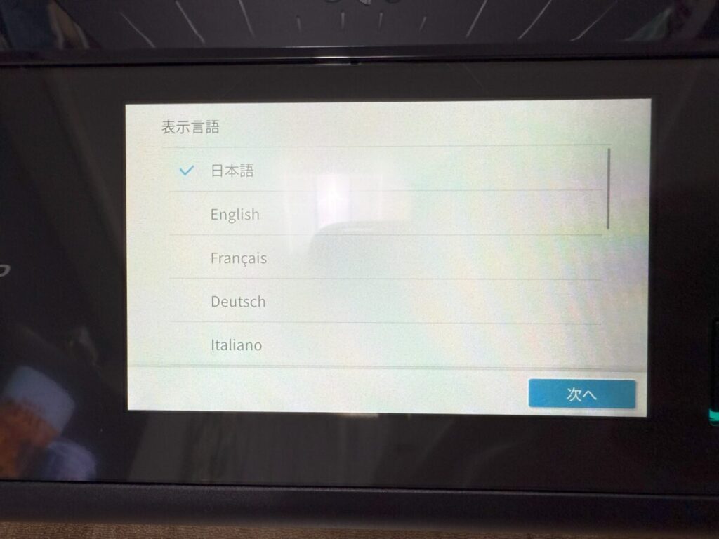 スキャナーの蓋を開き、起動させると言語設定から始まります。